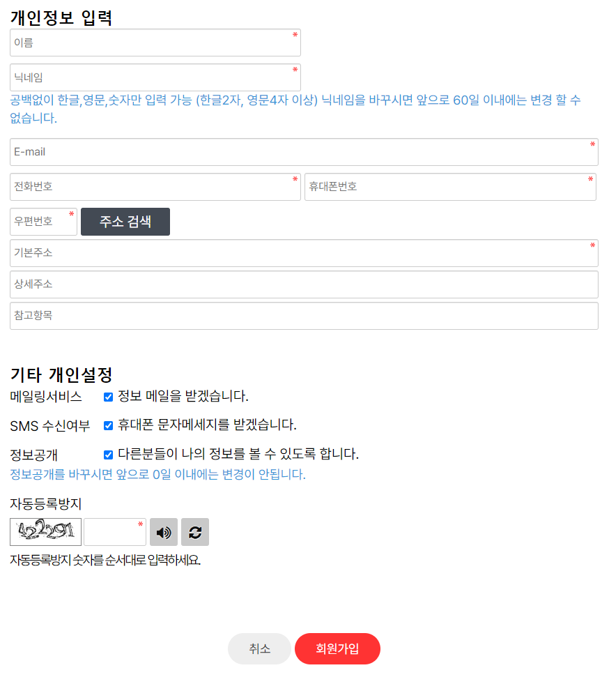 회원가입 메뉴를 클릭하여 회원가입 페이지로 이동